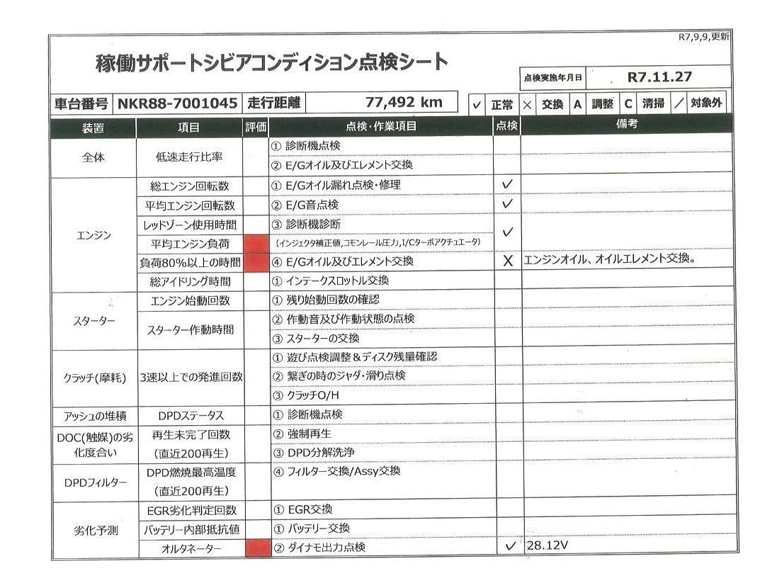 | 車台番号 | NKR88-7001045 | 馬力 | 150 PS | ||||||||||||||||||||||||||||||||||||||||||||