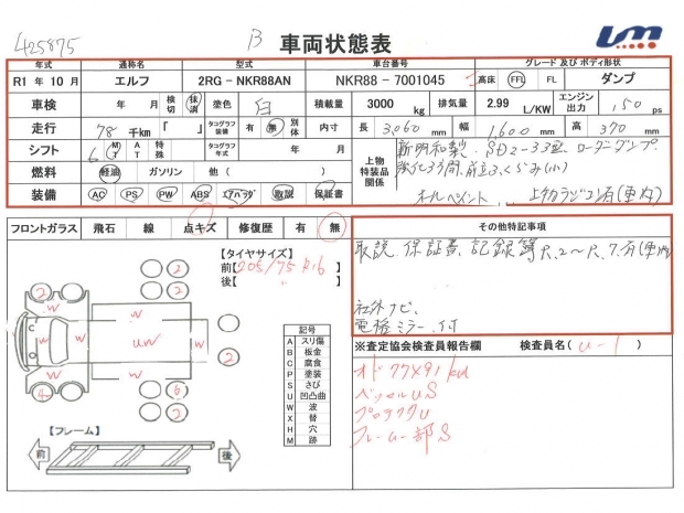 | ボディ内寸 | 荷台長 | 3,060 mm | 走行距離 | 78,000 km | |||||||||||||||||||||||||||||||||||||||||||
