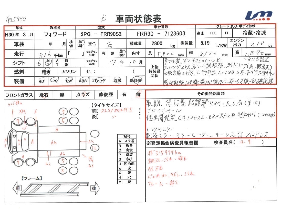 | ボディ内寸 | 荷台長 | 5,800 mm | 走行距離 | 316,000 km | |||||||||||||||||||||||||||||||||||||||||||