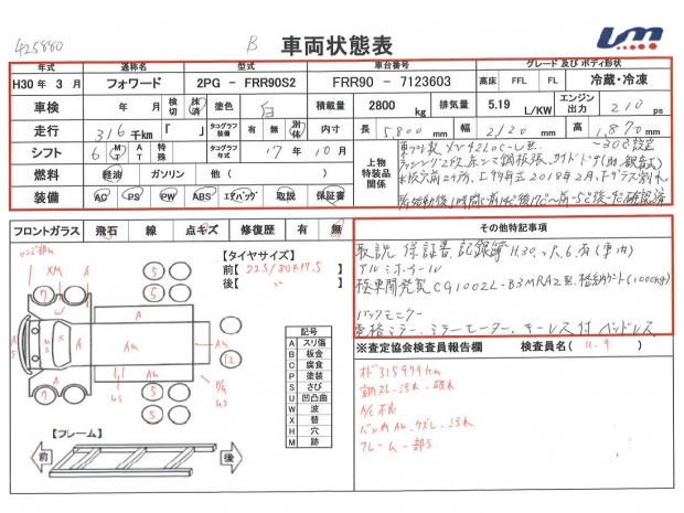 | 車台番号 | FRR90-7123603 | 馬力 | 210 PS | ||||||||||||||||||||||||||||||||||||||||||||