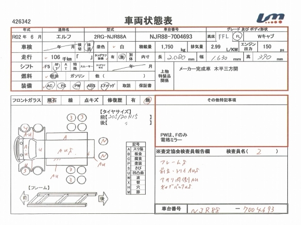 | 車台番号 | NJR88-7004693 | 馬力 | 150 PS | ||||||||||||||||||||||||||||||||||||||||||||
