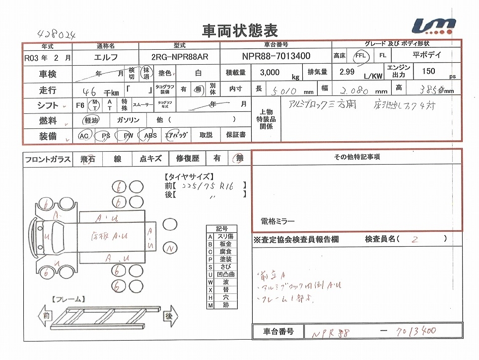| 車台番号 | NPR88-7013400 | 馬力 | 150 PS | ||||||||||||||||||||||||||||||||||||||||||||
