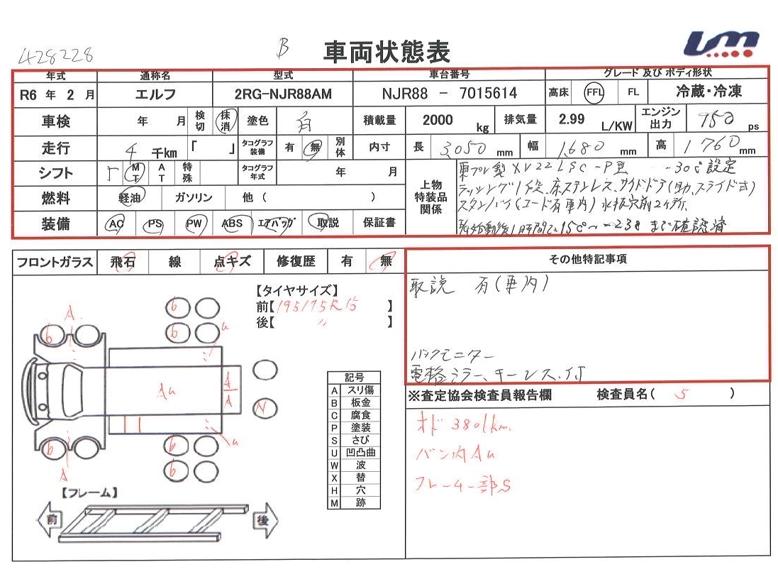 車台番号 NJR88-7015614 馬力 150 PS