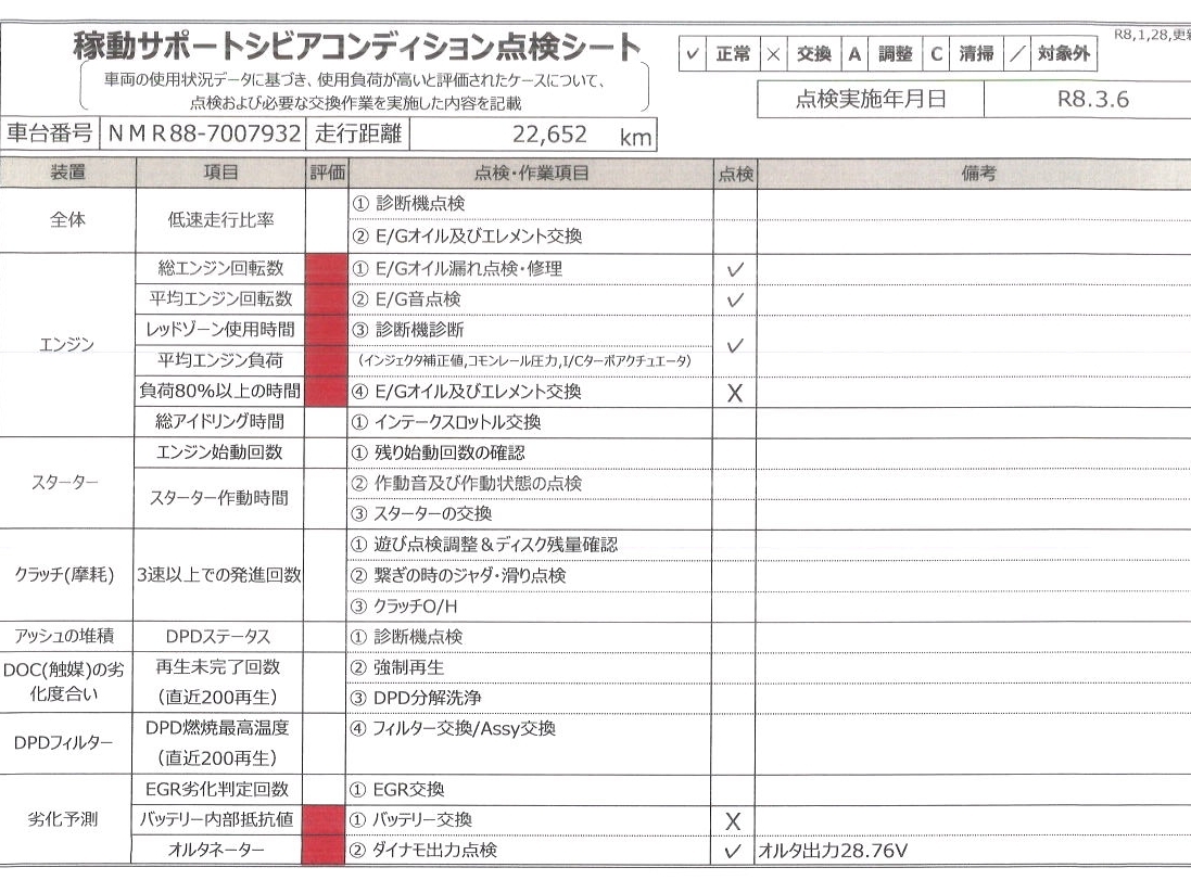 | 記録簿 | 有 | 定期点検整備 | 無 |