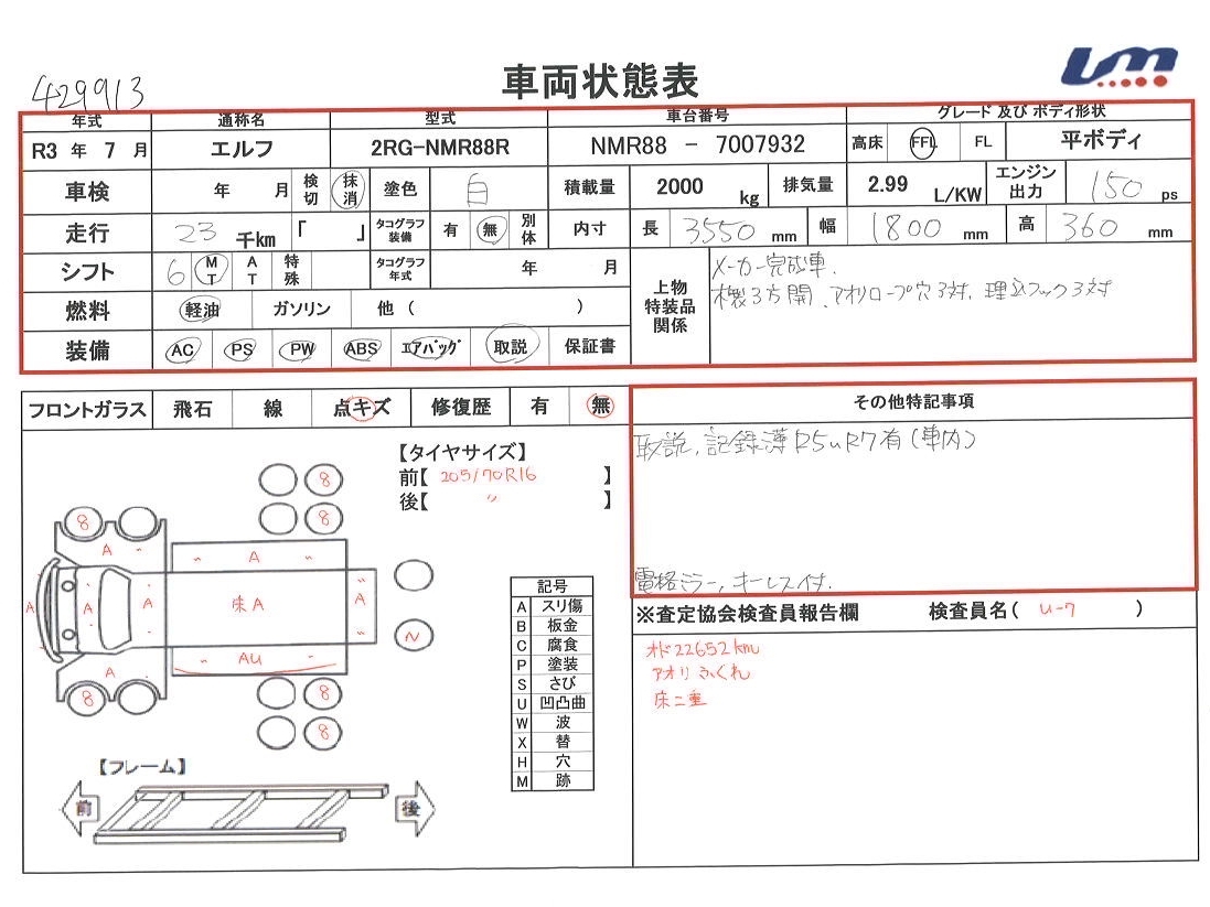 | ボディ内寸 | 荷台長 | 3,550 mm | 走行距離 | 23,000 km | |||||||||||||||||||||||||||||||||||||||||||
